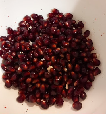 Granaattiomenamehu on hyvää minusta. Ja sillä väitetään olevan paljon hyviä terveysvaikutuksia. Minä syön itse hedelmästä niitä siemeniä myös. Niitä voi laittaa salaattiin, smootheihin, jogurtteihin, puurojen päälle ym. Niitä saa myös kaupan pakastealtaastakin.
